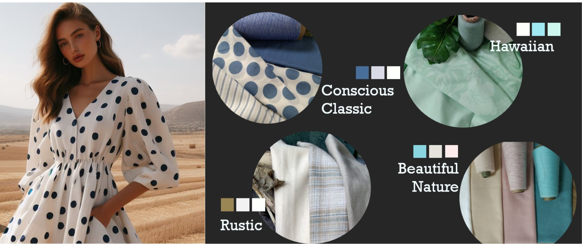 The learnings from the pilot resulted in a synchronized swatch book with over 10 different woven fabrics made with Altag spread across four collections: